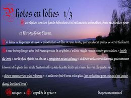 Vous êtes actuellement sur la page du pps Images en folie 1, un diaporama publié dans la catégorie Photos Images. Robin, le créateur de ce pps fait parti des 200 contributeurs du site PPSMANIA. Retrouvez tous les diaporamas de Robin dans sa catégorie: